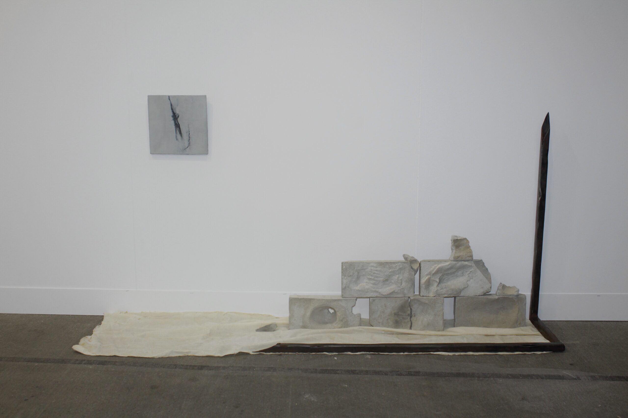 Sasha Kramer (*2001 in Denver, CO) creates installations that focus on abstract narratives. In her works, she addresses the confinements that our bodies experience through architecture, clothing and social barriers, as well as their manifestation in our memories and dreams. The works convey a moment of familiarity without clearly exposing it. Industrial materials such as wood, concrete and metal contrast with found objects that embody a sense of belonging and encapsulate memories.